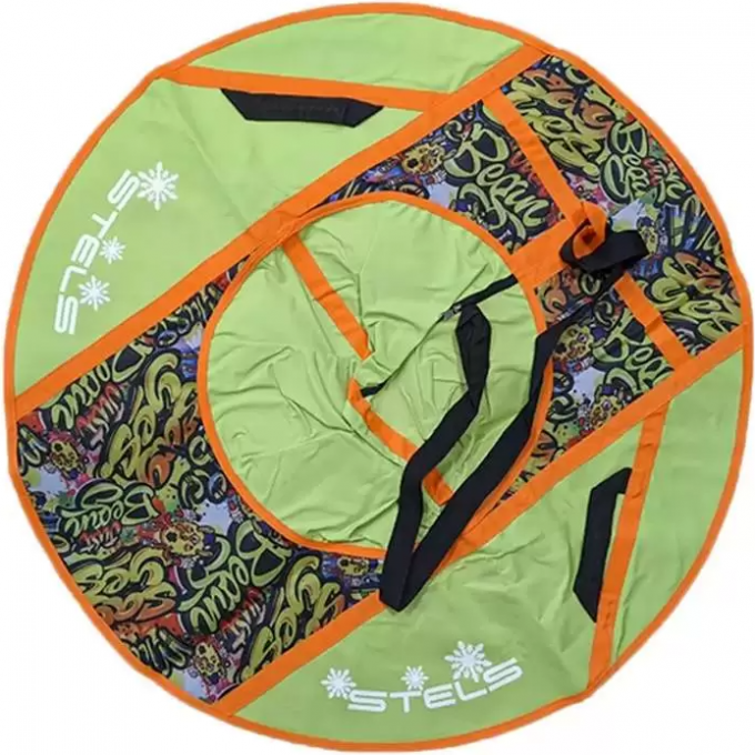 Санки надувные STELS диаметр 90 см. Тент без камеры, верхний слой - ткань с рисунком полотняного переплетения 600D с водонепроницаемой пропиткой на внутренней стороне, нижний слой - гладкая тентовая ткань, наиболее нагруженные швы усилены капроновой лентой, места крепления ручек дополнительно прошиты лавсановой нитью. Надувные санки подарят ребенку незабываемые впечатления и эмоции от катания на снежной и ледяной горке. Благодаря яркой расцветке, неординарному дизайну, такой снегокат - надувное колесо обязательно понравится малышу. Ватрушка обладает особой конструкцией и обеспечивает ребенку максимальную безопасность во время активного отдыха. Волокуши без камеры в сдутом виде занимают минимум места. Поэтому с их хранением не возникнет никаких сложностей. Детские сани имеют удобное сидение и при этом способны выдержать не только ребенка, но взрослого и помогут максимально разнообразить зимние прогулки. Естественно, что такие развлечения обязательно запомнятся детям и вызовут настоящий восторг. Внутренняя камера приобретается дополнительно!